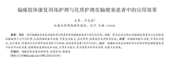 参考资料:[1]王军.偏瘫肢体康复训练护理与优质护理在脑梗塞患者中的应用效果德邦国际,中国冶金工业医学杂志,2024-06-04